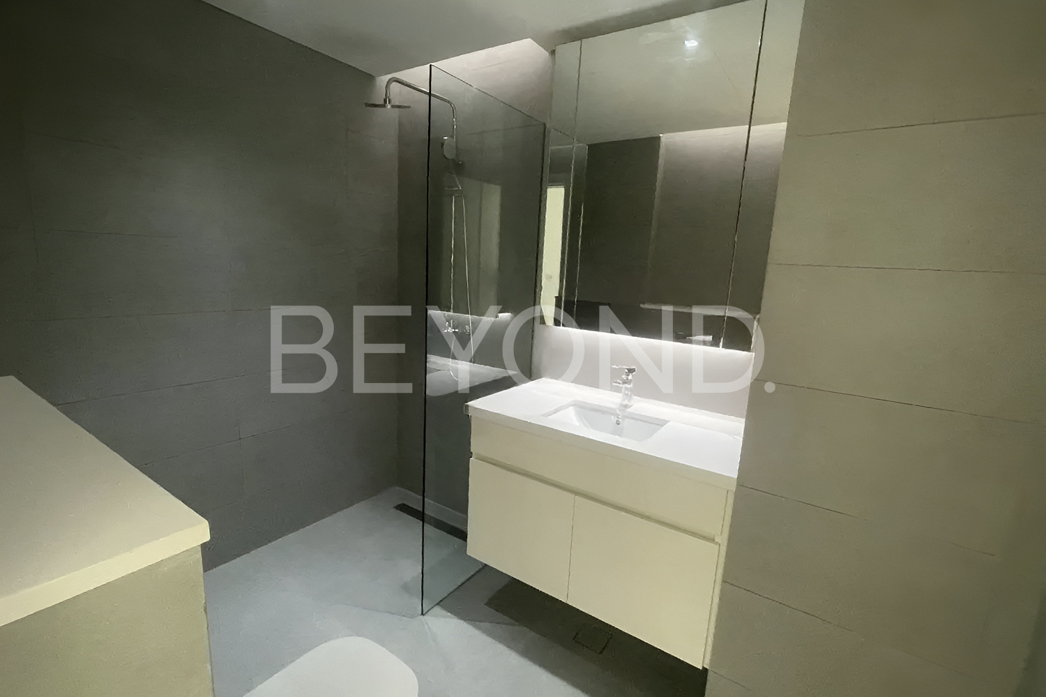 Приватная часть квартиры представлена мастер-спальней с собственной гардеробной и ванной комнатой, что создаёт ощущение полноценной резиденции. Дополнительно предусмотрен гостевой санузел и отдельная зона прачечной, что повышает комфорт повседневной жизни.