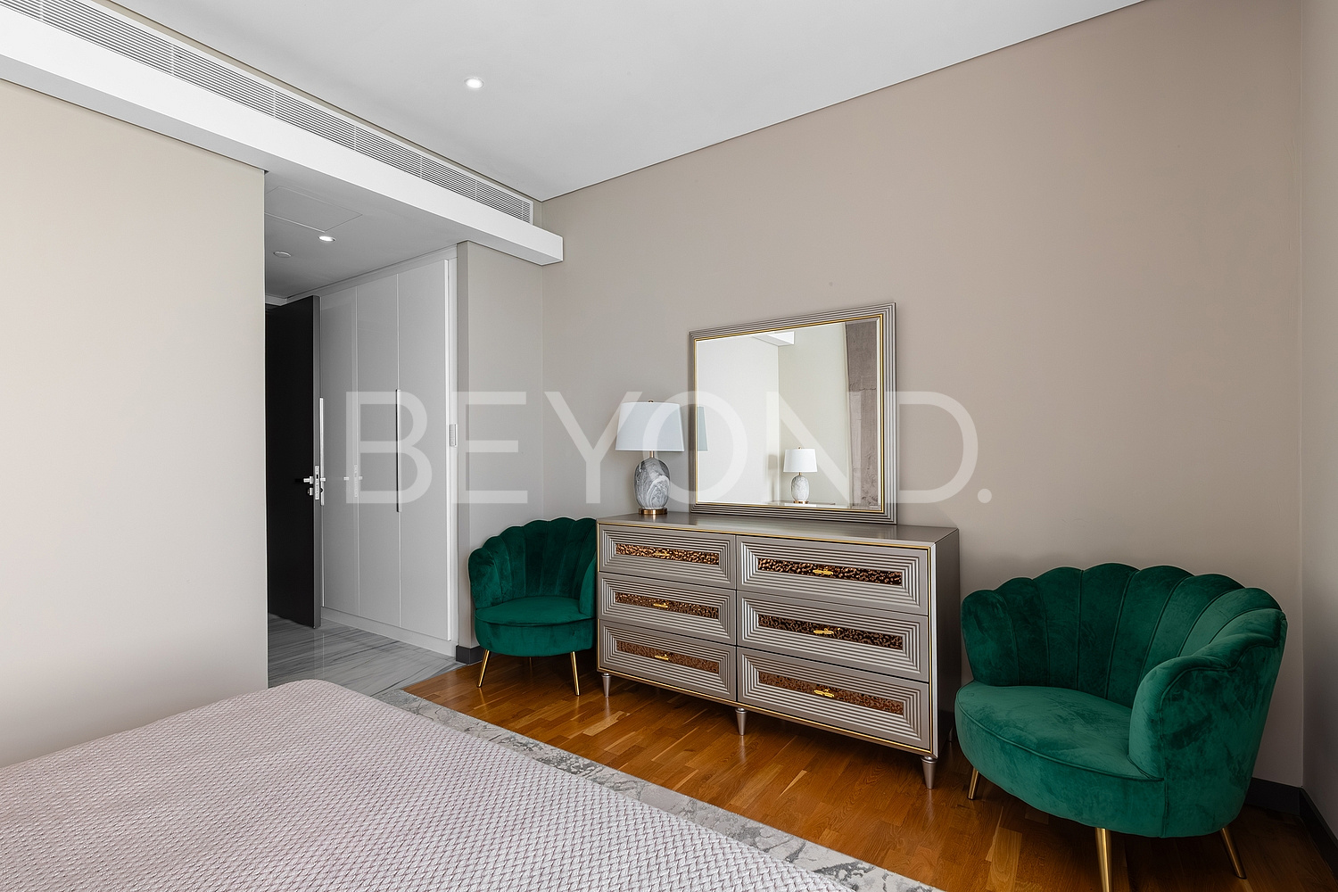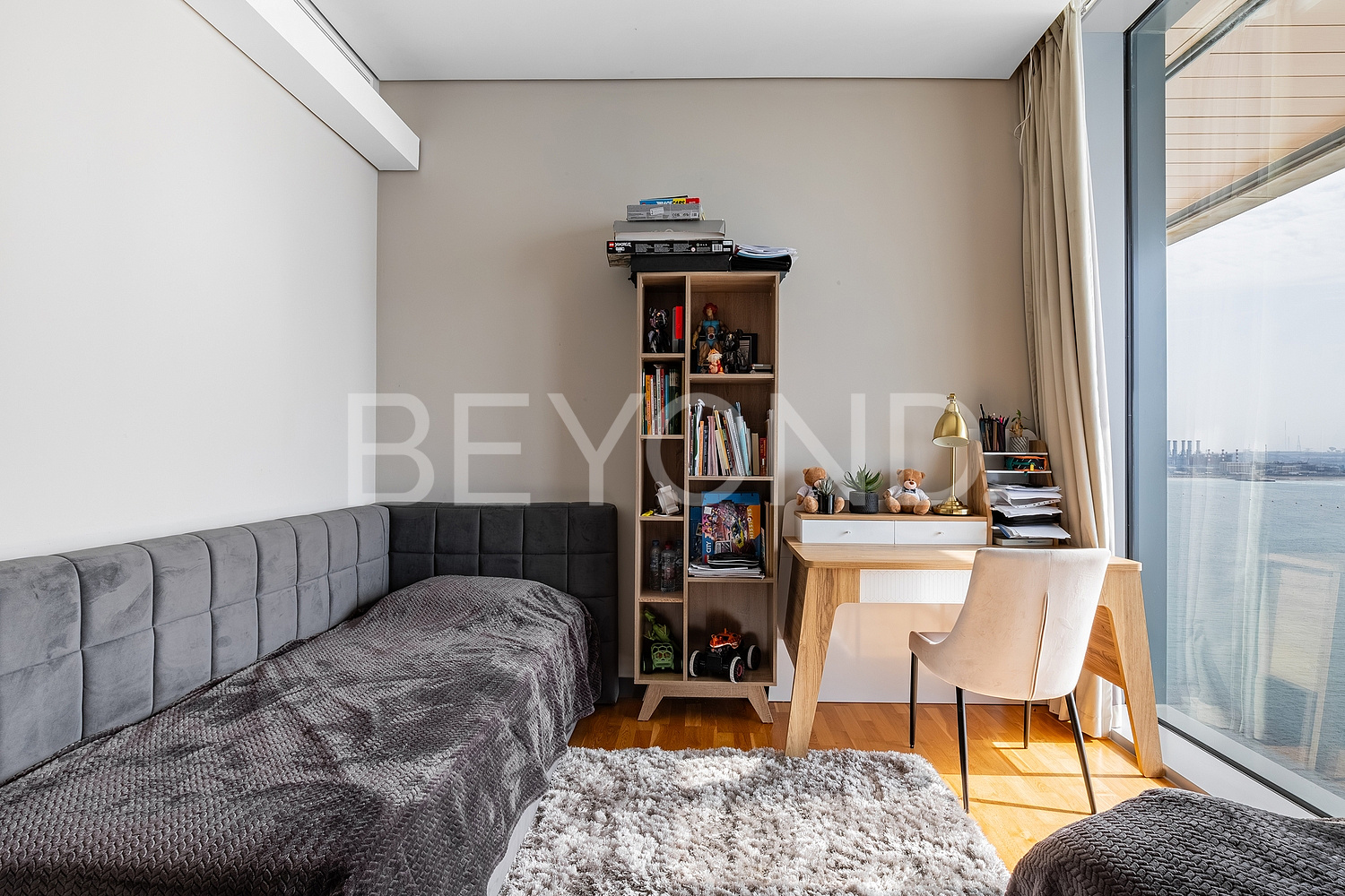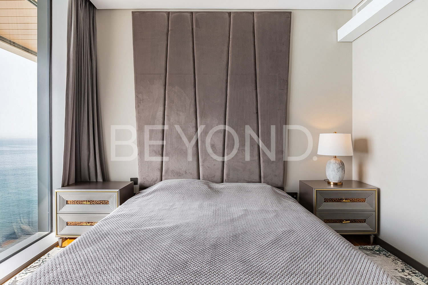 Эта полностью меблированная квартира включает четыре спальни и ванные комнаты, просторную гостиную, а также кухню с обеденной зоной. Кроме того, в наличии имеется комната для прислуги и уютный балкон с видом на водные просторы.
