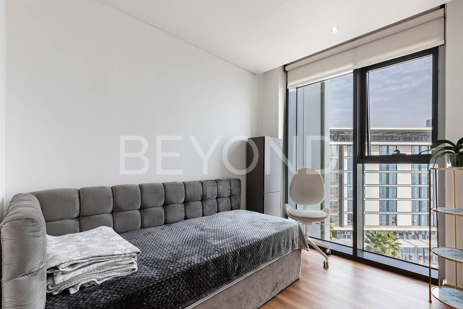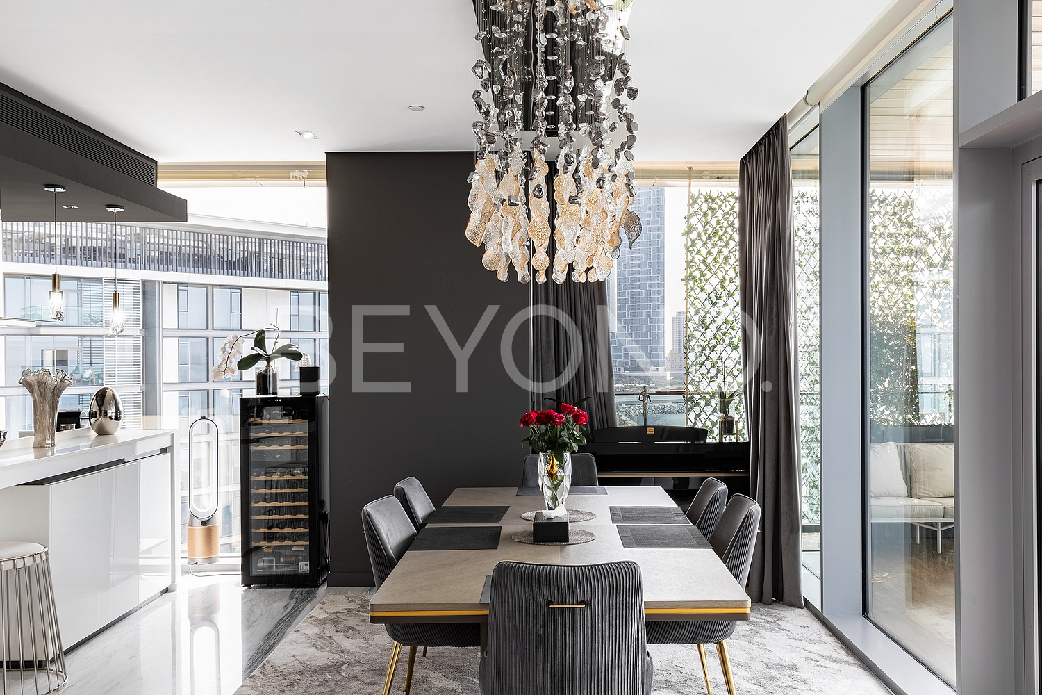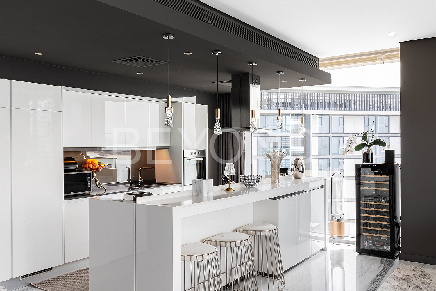 Эта полностью меблированная квартира включает четыре спальни и ванные комнаты, просторную гостиную, а также кухню с обеденной зоной. Кроме того, в наличии имеется комната для прислуги и уютный балкон с видом на водные просторы.