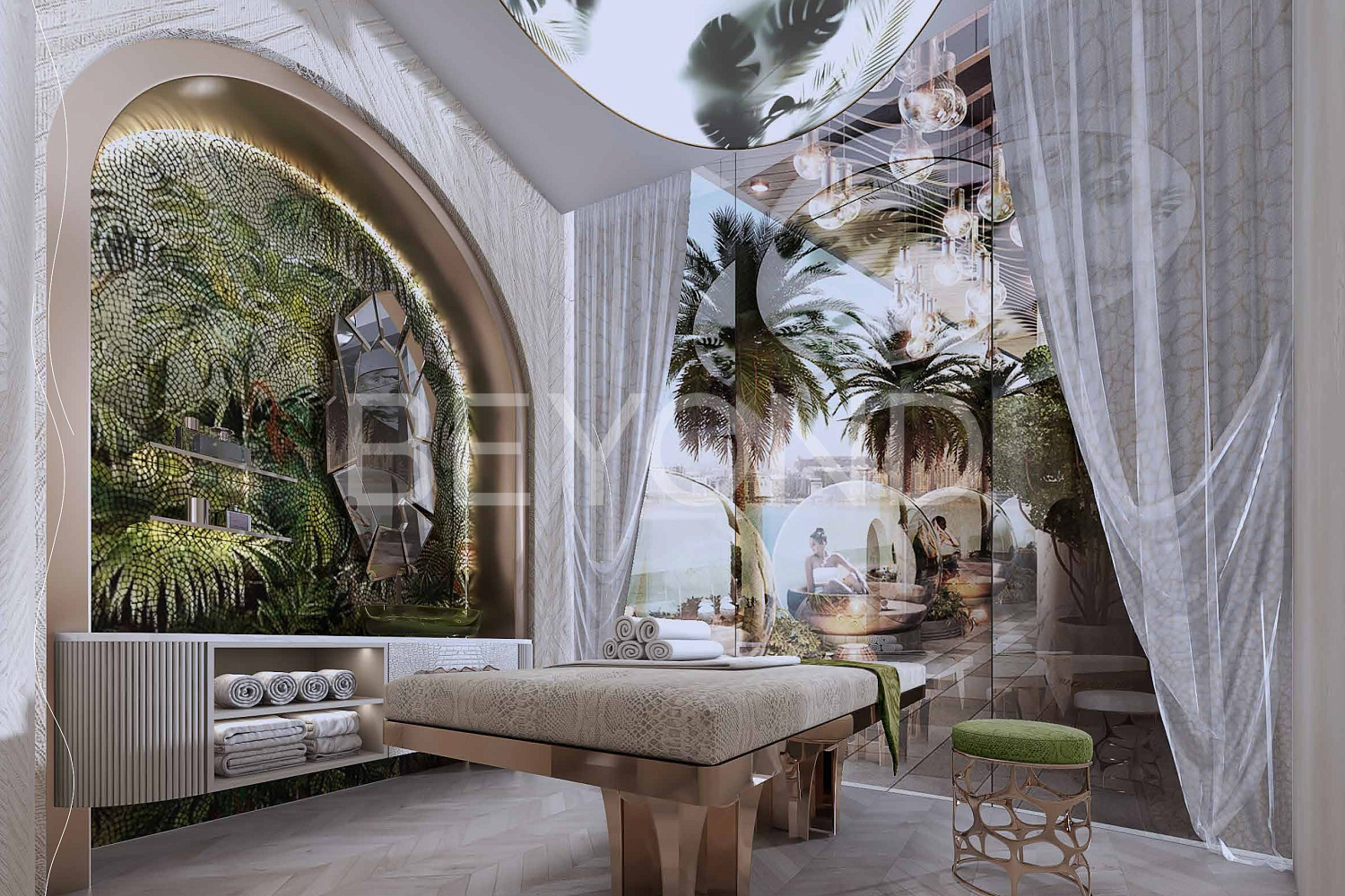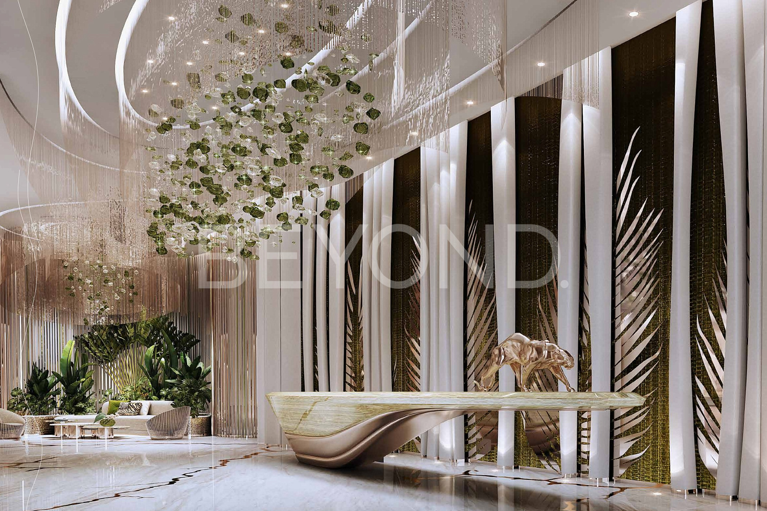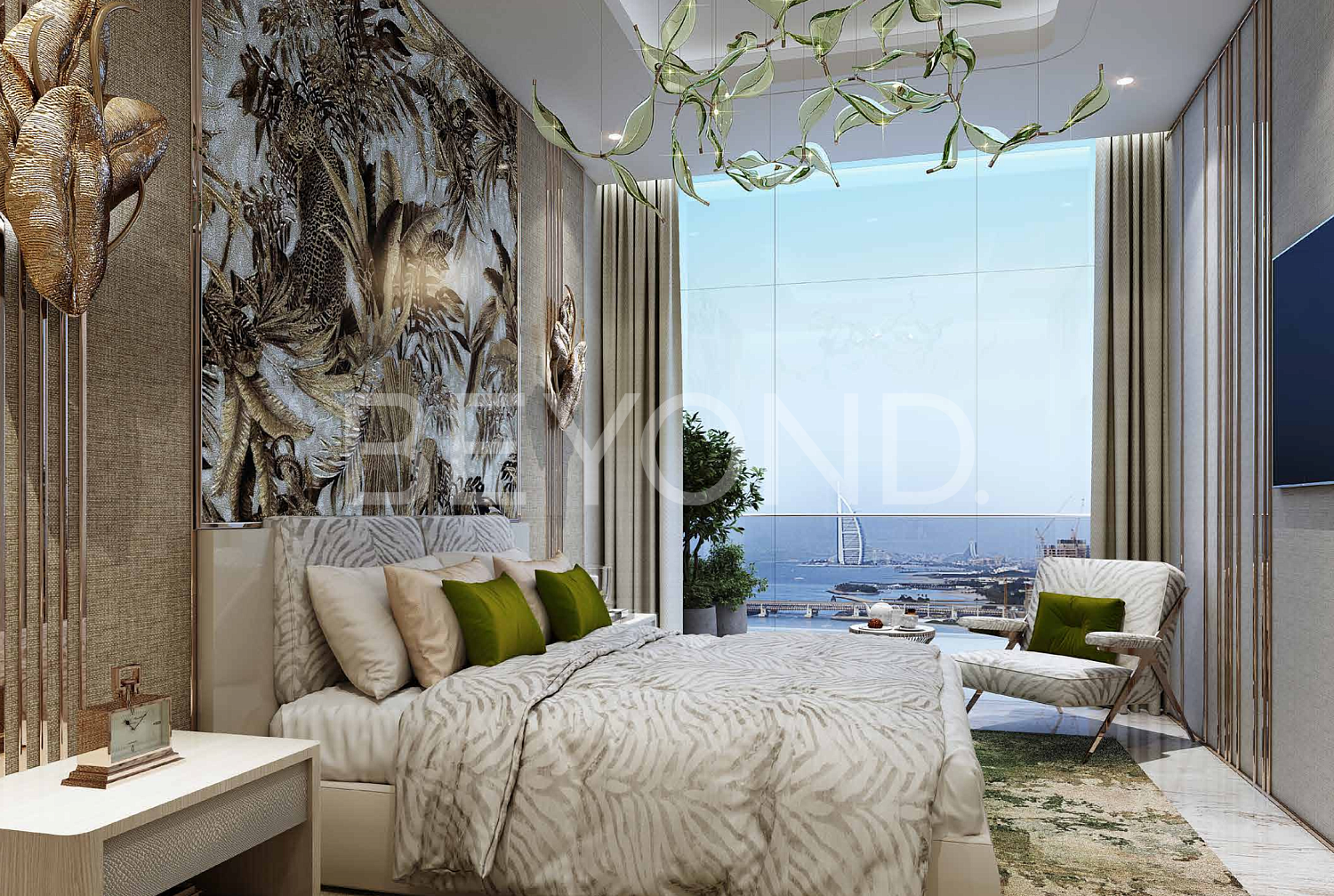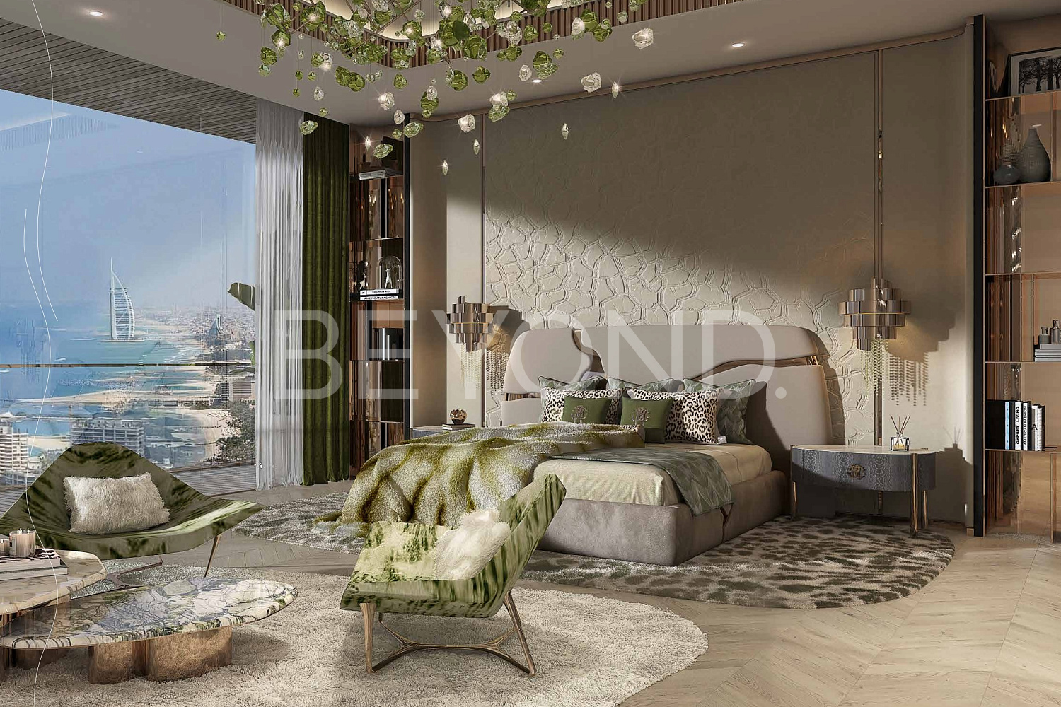 Апартаменты создаются всемирно известным модным домом Roberto Cavalli. Хрустальные люстры, приглушенные цвета, анималистические принты и использование натуральных материалов, таких как мрамор, дерево и керамическая плитка, делают этот дизайн по-настоящему впечатляющим. Кухня оборудована премиум-классовой техникой, ванные комнаты и гардеробные также полностью оборудованы.