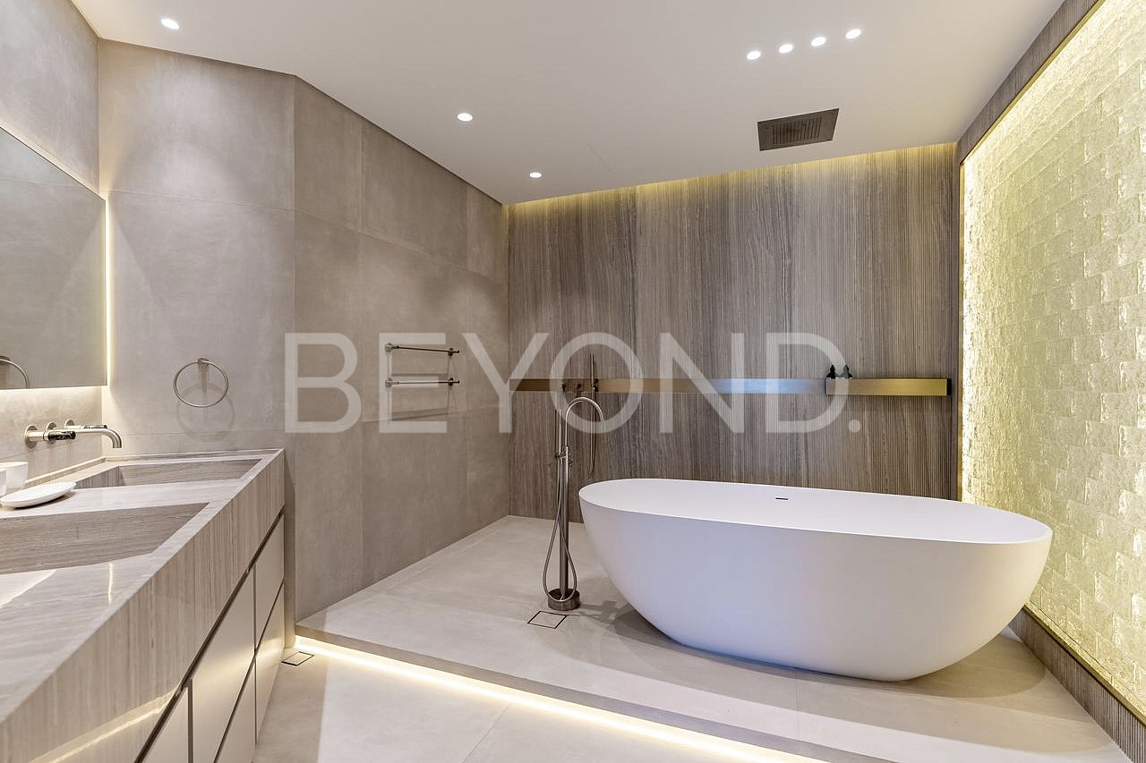 Совершенно новая вилла от дизайнера, охватывающая 470 квадратных метров, с четырьмя роскошными спальнями и комнатой для прислуги, а также собственным инфинити-бассейном. Вилла готова к немедленному заселению. Планировка виллы обеспечивает грамотное разделение кухни и гостиной с просторной обеденной зоной. Гостевая спальня и комната для прислуги находятся на первом этаже, еще три просторные спальни расположены на втором, каждая с собственными ванной комнатой и гардеробной. При отделке использовались только натуральные материалы: мрамор, древесина, а также стильная сантехника и бытовая техника Miele в кухонной и прачечной зонах.