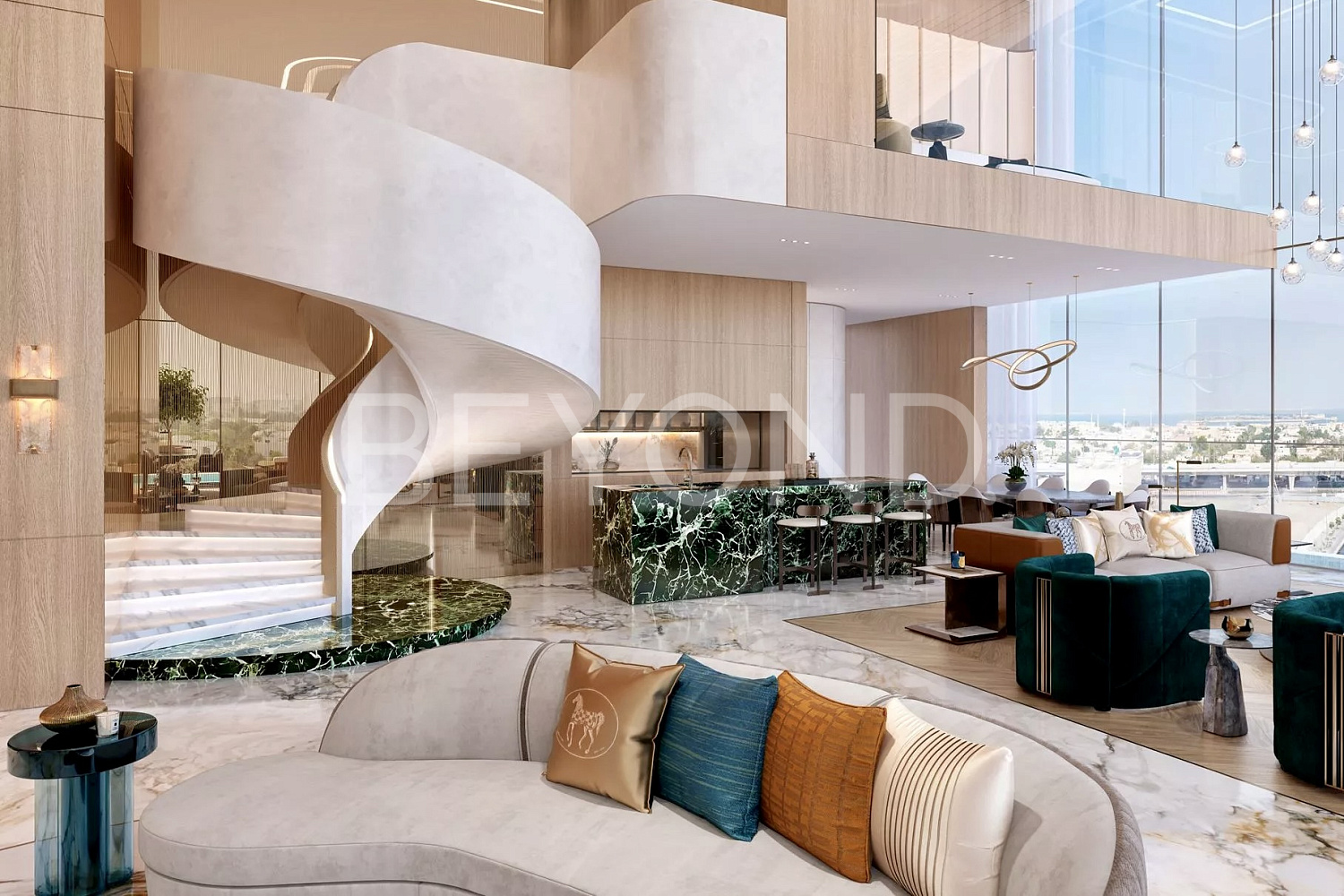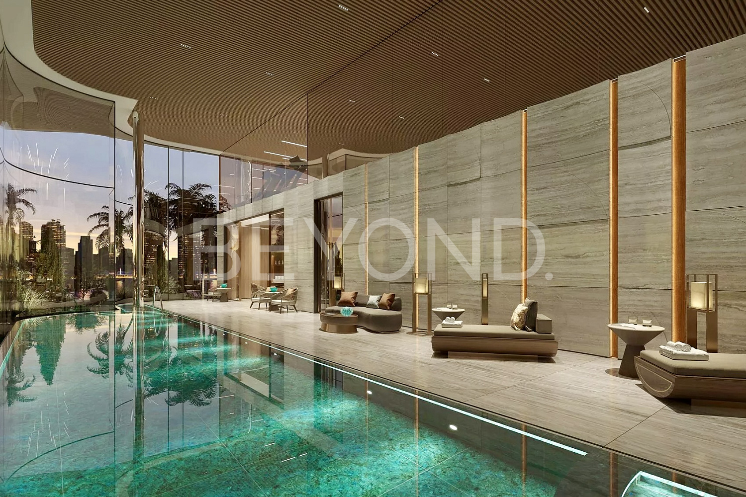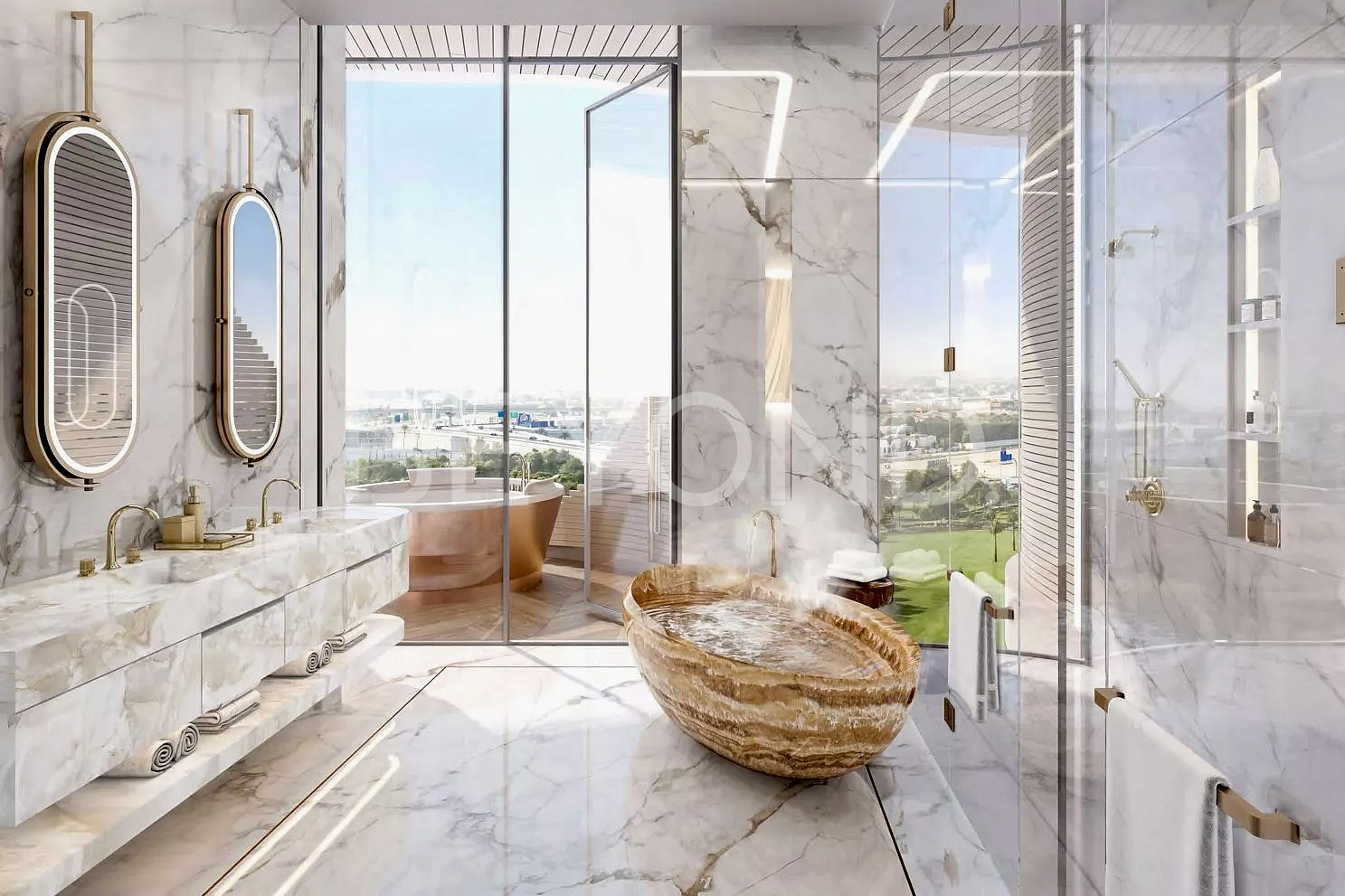 Этот роскошный апартамент площадью 471 квадратный метр расположен на первом этаже и открывает великолепный прямой вид на воду. Просторная гостиная с панорамными окнами от пола до потолка залита естественным светом. Все три спальни оснащены собственными ванными комнатами. Из главной спальни открывается прекрасный вид на парк Safa, а также имеется выход на террасу с собственным бассейном.