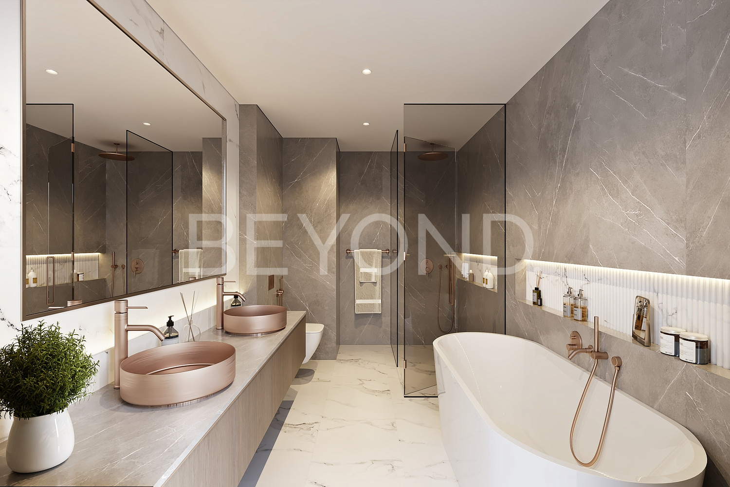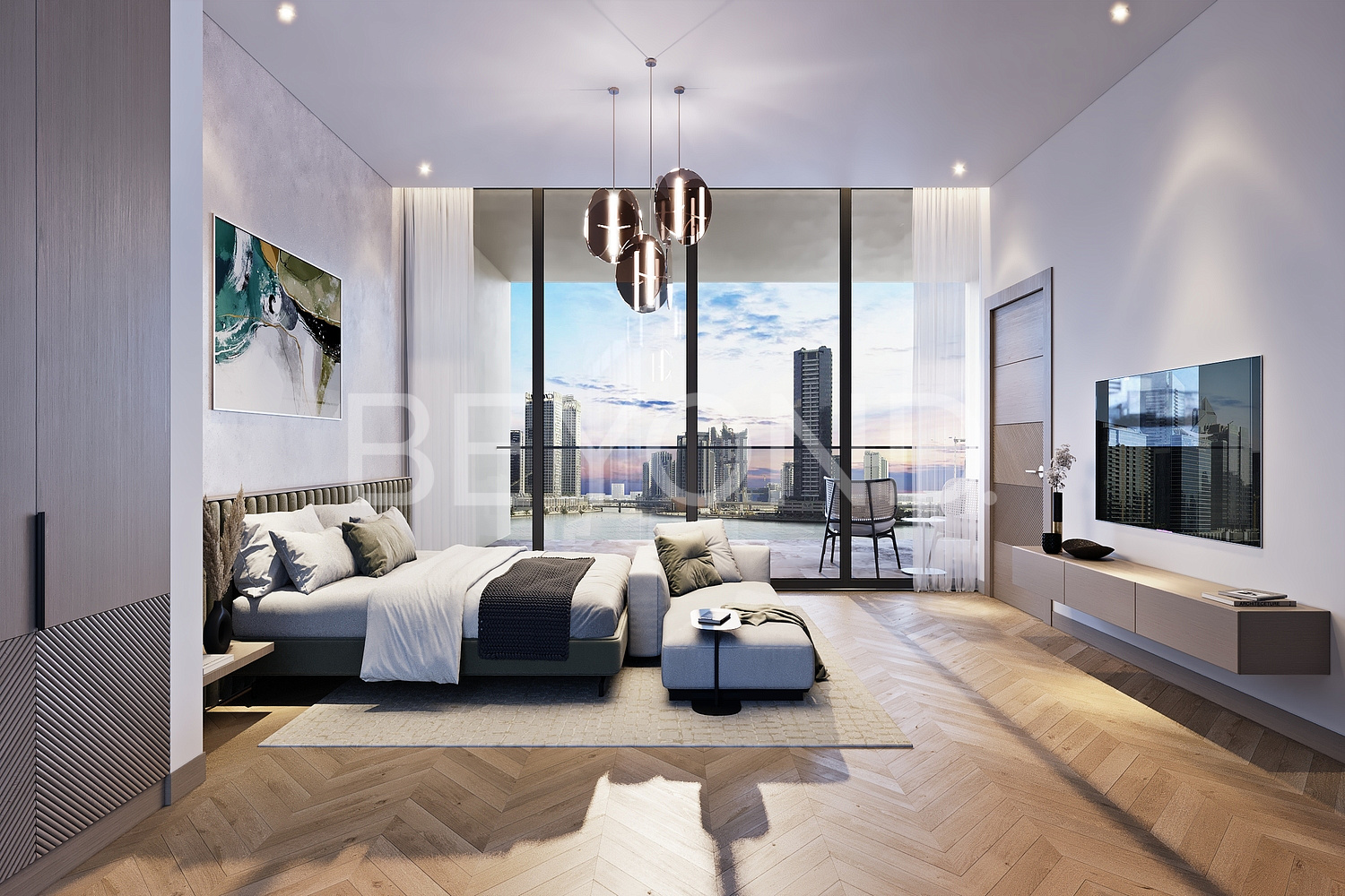 Предлагается к продаже апартамент площадью 135 кв. м, расположенный на 24 этаже и включающий две спальни и просторную террасу. Благодаря панорамным окнам, охватывающим всю высоту стен, резиденция будет наполнена естественным светом, обеспечивая максимальный комфорт. Встроенная кухня и ванные комнаты выполнены из высококачественных материалов и оснащены современными технологиями. Жители смогут наслаждаться премиальным уровнем жизни, не покидая своё жилище — например, принимая солнечные ванны на террасе у плавательного бассейна с захватывающим видом. Для любителей активного досуга в здании предусмотрены ультрасовременный тренажерный центр и зал для сквоша.