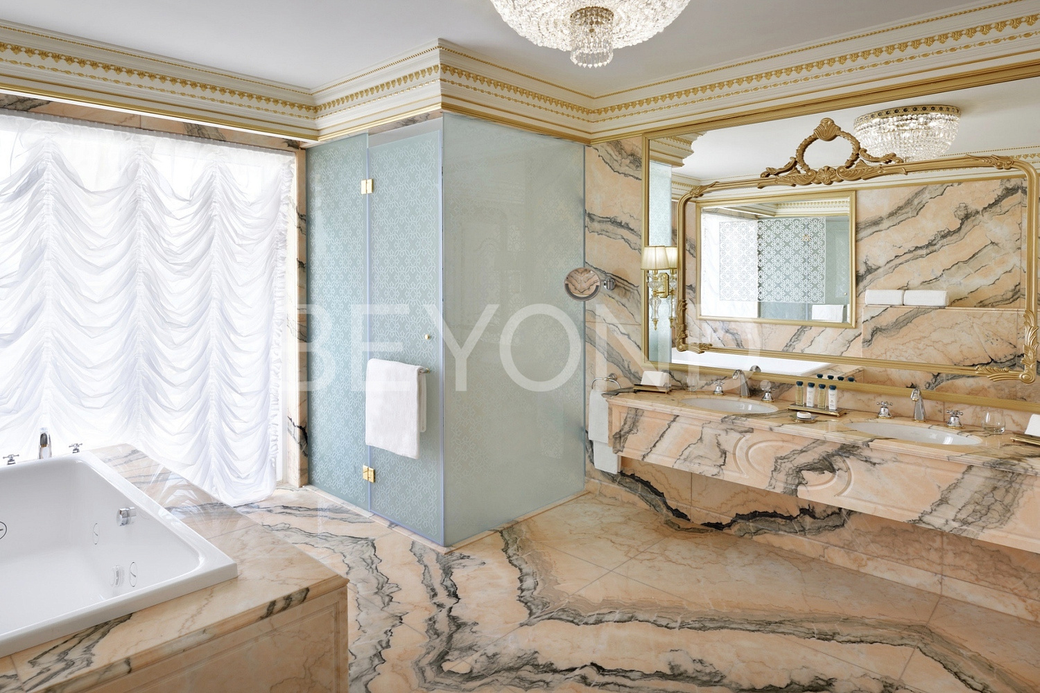 Величественная вилла с поистине королевскими интерьерами включает в себя четыре спальни и семь ванных комнат, просторные террасы и собственный бассейн с подогревом на крыше, откуда открывается панорамный вид на город.