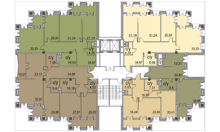 Кирпично-монолитный каркас и вентилируемые фасады с отделкой натуральной керамической плиткой NBK Terrart (Германия)