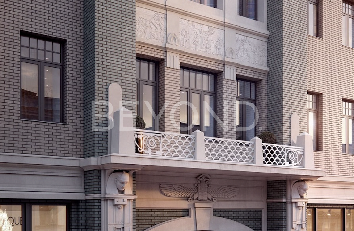 Апартамент расположен в особняке «История», который является результатом восстановления доходного дома 1903 года по проекту Адольфа Эрихсона. Элегантный фасад в стиле модерн украшен уникальным декором, включая барельефы и маски древнего Египта, при этом дом сохранил свой исторический облик.