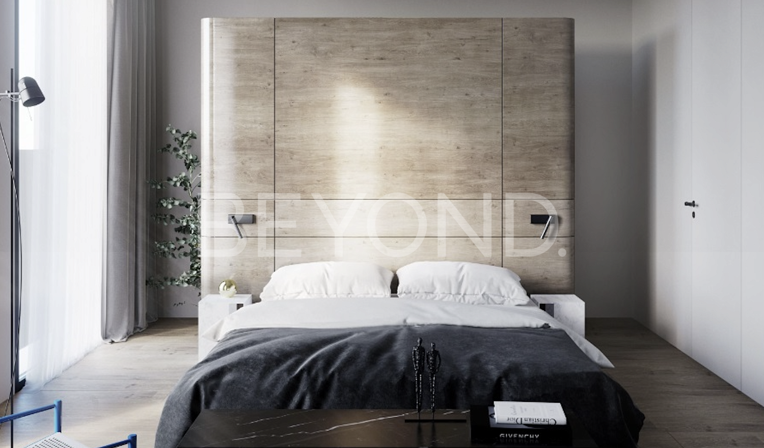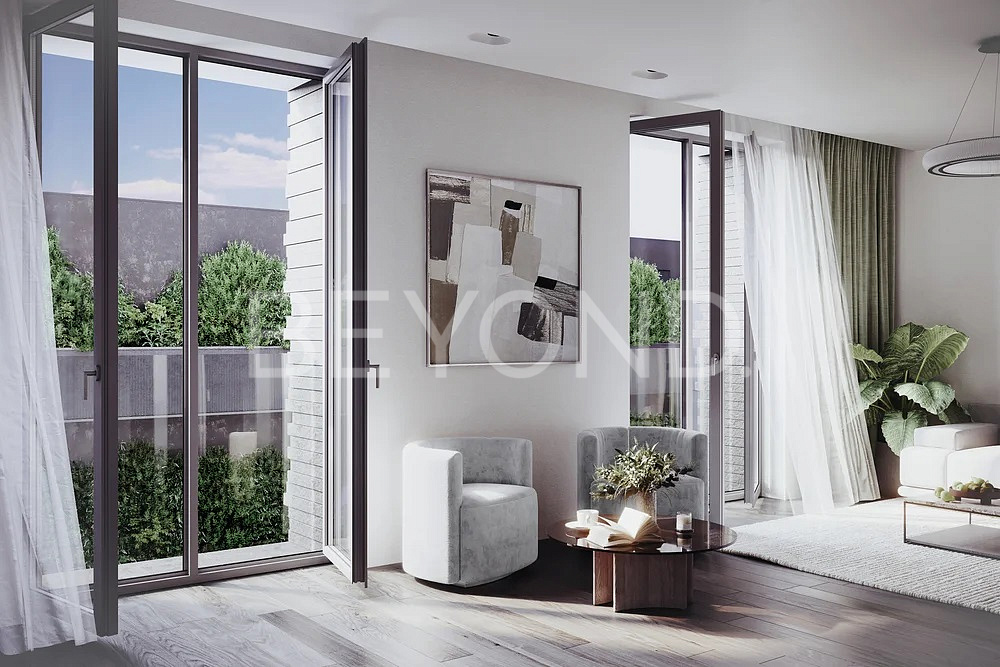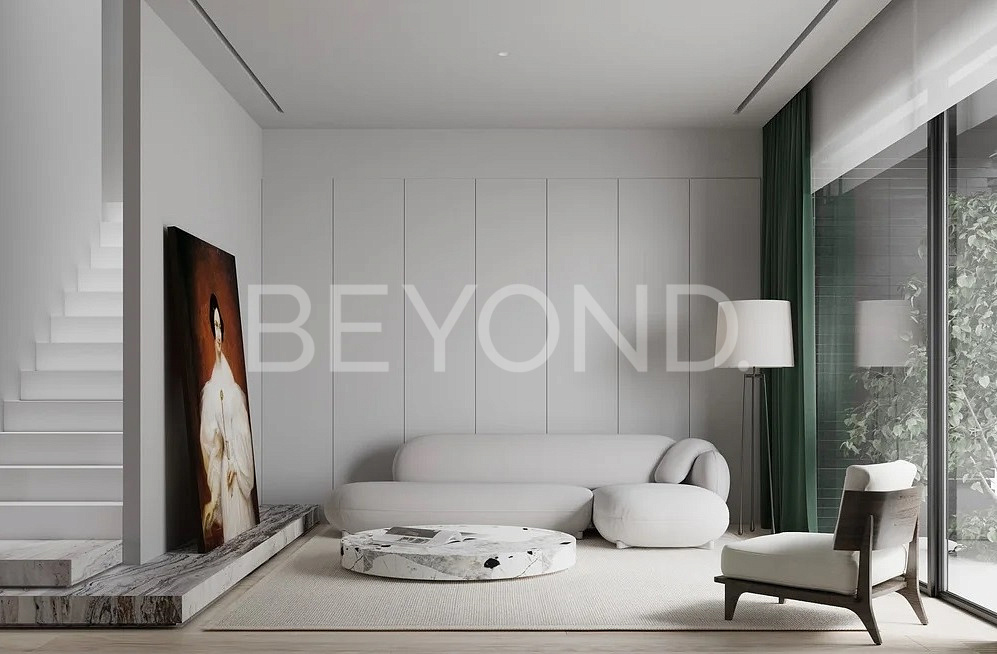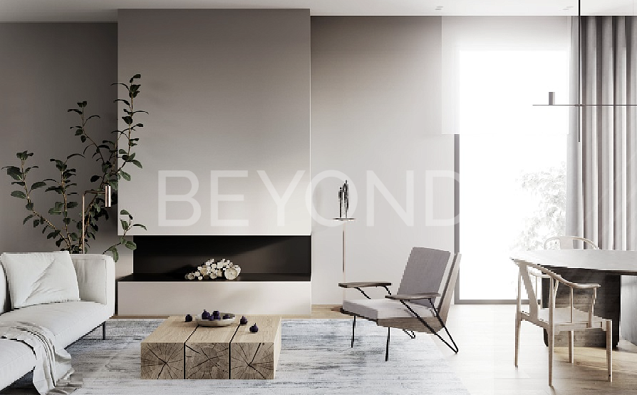 В апартаменте высокие потолки и панорамные окна с видом на вертикальный лес и зеркальную аллею. Особым украшением являются французские балконы из прозрачного стекла.