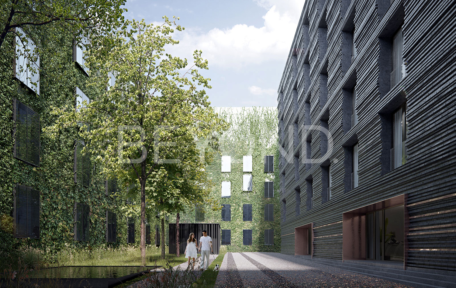 Пентхаус находится в особняке «Порода» – это новый осjбняк в комплексе Большая Дмитровка IX, фасад которого выполнен из темного туфа. Лобби – это роскошная парадная галерея, украшенная мрамором и декоративными элементами из стали.