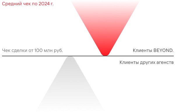 Аналитика продаж BEYOND. показывает, что более 50% обращений в сегменте 100млн+ мы получаем от существующих клиентов.