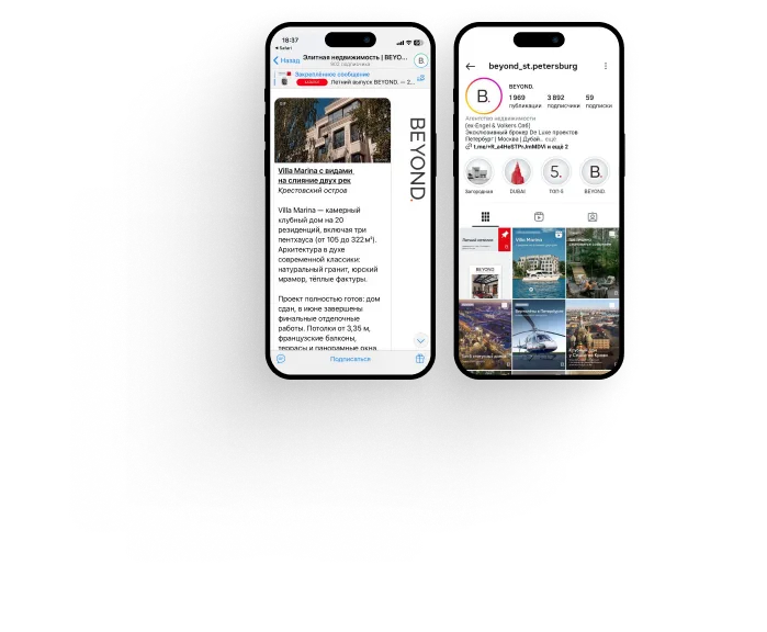 С помощью WhatsApp рассылки по базе клиентов BEYOND. мы держим собственников и заинтересованных клиентов в курсе последних новостей рынка городской и загородной недвижимости, а так же знакомим их с новыми объектами и ценами.